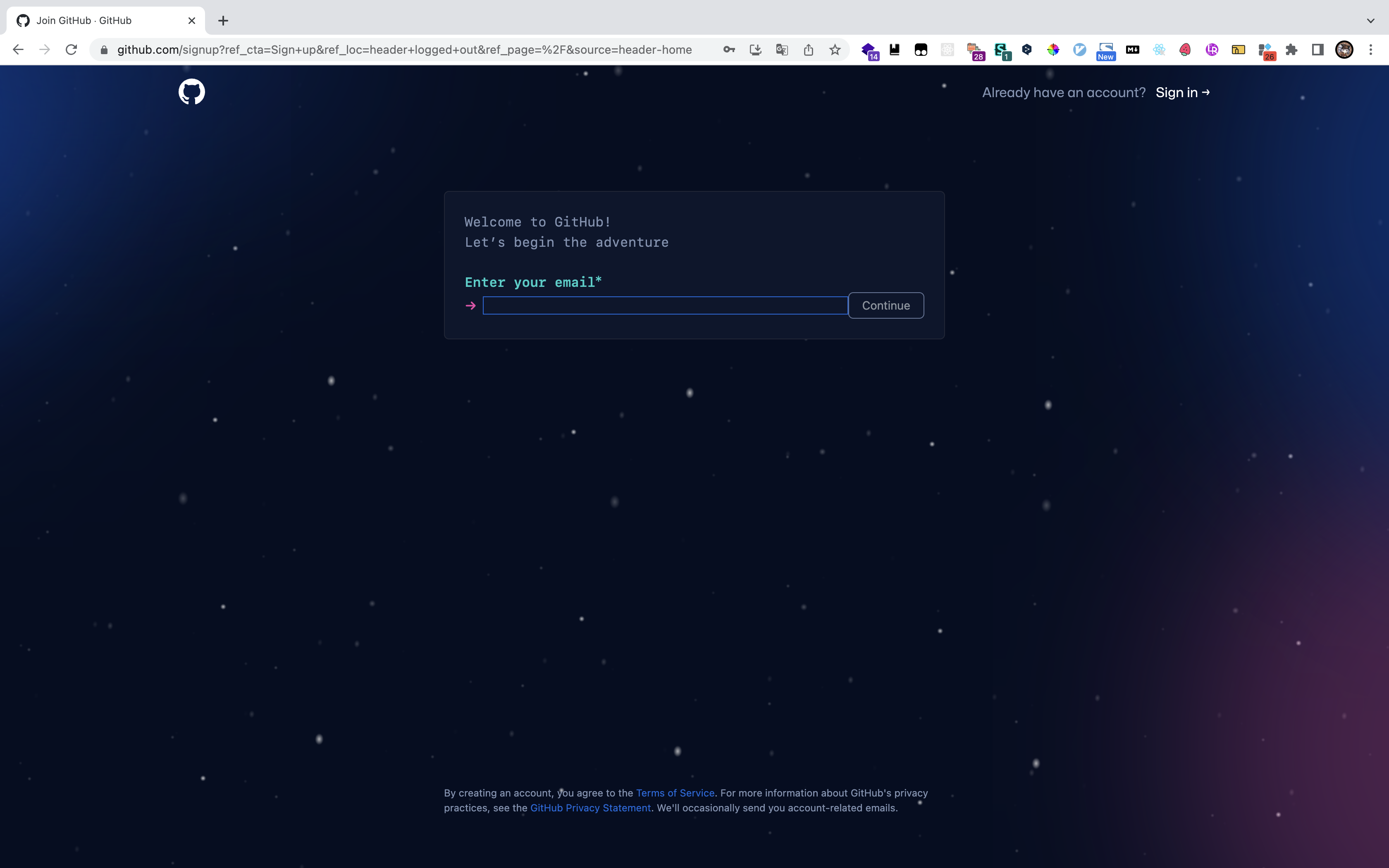 右上の Sign in を押し Sign in with GitHubを押してください。