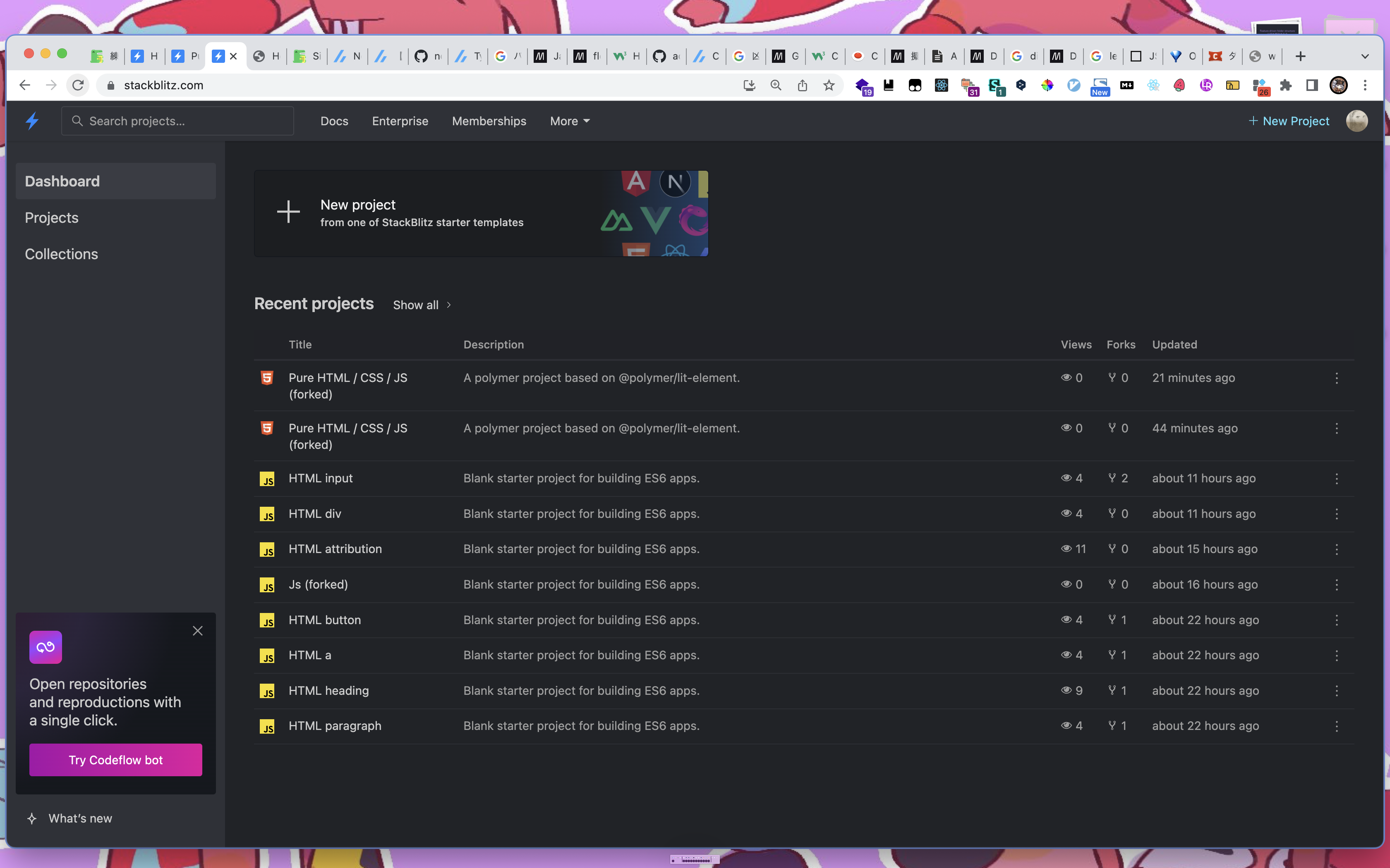 上のPure HTML / CSS / JS (forked)を押すとプロジェクトの名前を変更することができます。